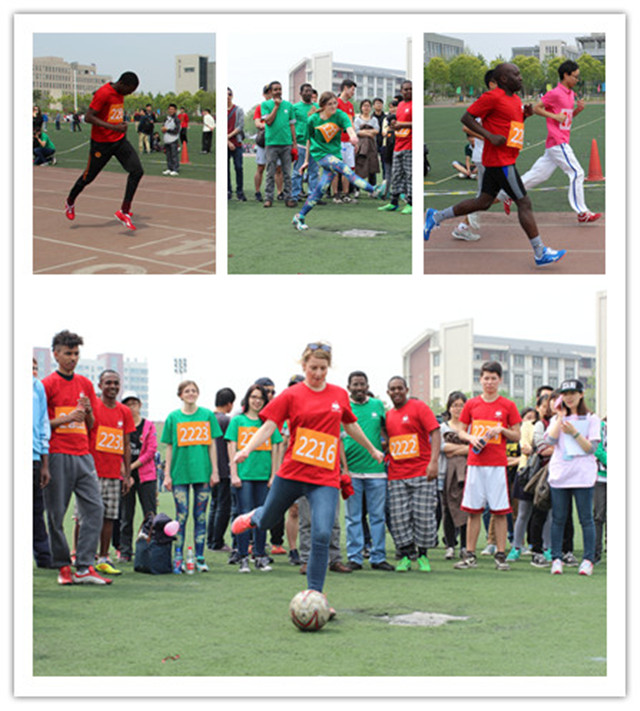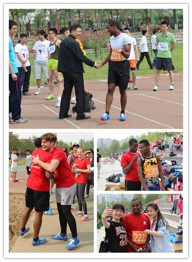 赛场上,同学们互相加油、送水、搀扶,就连我们加油的话语也是五花八门、各种语言混杂。每一个走下赛场的同学都会受到朋友们的热情拥抱。”Give me five!” ,击掌庆祝。很多中国同学也会跑过来和自己的外国同学说:“你跑的真快,祝贺你。”这种互动,正是我们要参加这次运动会的初衷之一:我们希望我们的外国留学生能够更进一步融入学校的氛围,进入到中国学生的生活中,从而能够让他们广交朋友、敞开心扉,在中国生活的更舒畅。