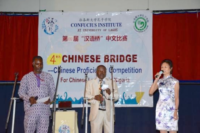 当地时间2015年3月13日,拉各斯大学孔子学院第四届“汉语桥”中文大赛在拉各斯大学礼堂隆重举行。中国驻尼日利亚大使馆和驻拉各斯总领事馆官员、拉各斯大学孔子学院中、外方院长、当地中资企业代表、以及当地汉语教学点的师生共四百余人参加活动。