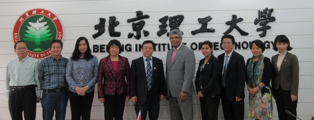 2015年10月14日下午,加拿大卡尔加里大学(University of Calgary)国际事务副教务长Janaka Ruwanpura、国际事务主管Savera Hayat-Dade及加拿大艾伯塔省政府中国办事处教育官员罗亚杰一行三人访问北京理工大学,杨宾常务副校长在2号楼133会议室会见了来宾。