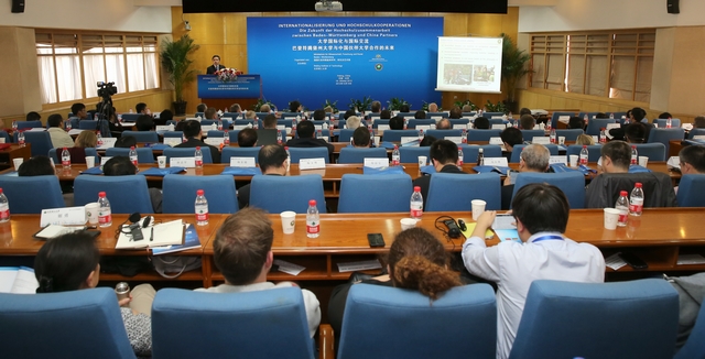 2015年10月19日,我校和德国巴登符腾堡州举办“大学国际化与国际交流:德国巴登符腾堡州大学与中国伙伴大学合作的未来”研讨会,来自中德三十余所高校和研究机构的150余名代表出席会议,德国巴登符腾堡州科学研究及艺术部部长Theresia Bauer女士、中国教育部国际司杨晓春处长分别致辞,北京理工大学校长胡海岩院士做主旨演讲。研讨会由北京理工大学常务副书记赵长禄教授和德国海德堡大学副校长Heermann教授共同主持。