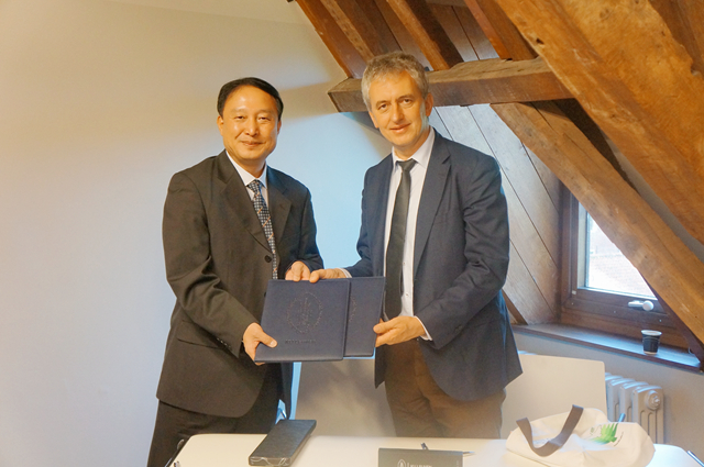 王晓锋副校长与Georges Gielen副校长共同签署校际合作备忘录