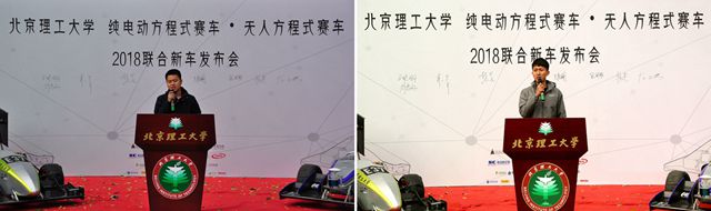 揭幕完成后,北京理工大学纯电动方程式赛车队及无人驾驶方程式赛车队队长周昊苏、潘博分别做车队工作总结,两队队员近一百余名队员,历经近一年时间,全力以赴、兢兢业业,投入到赛车的研发与制造中。此外,两位队长还分别介绍了两辆方程式赛车的设计理念及设计亮点,表达了即将征战赛场的必胜信心。