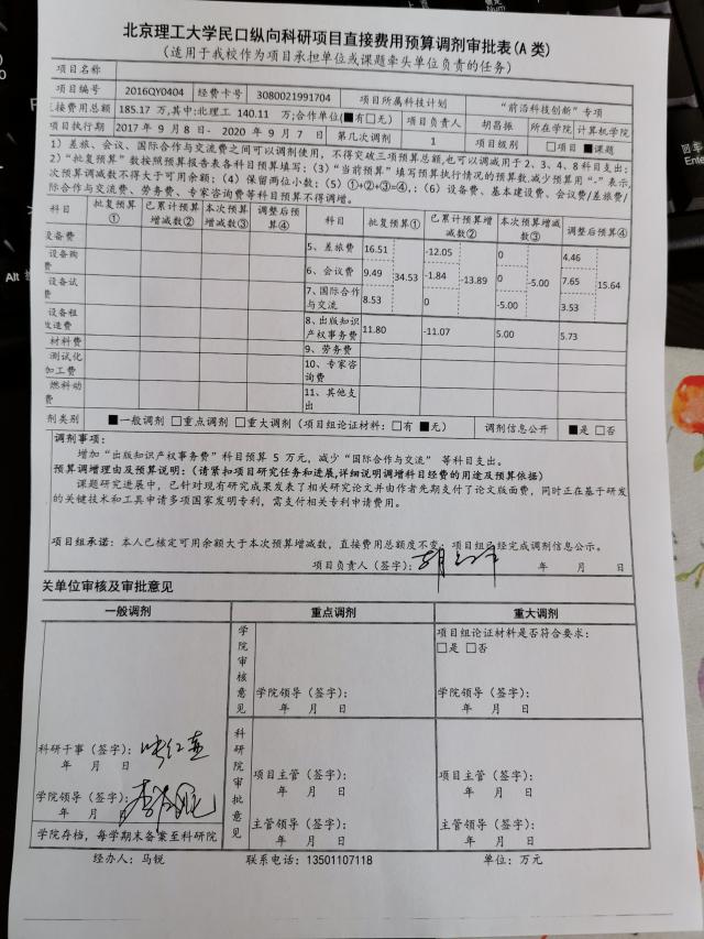 项目2016QY0404预算调剂(一般)