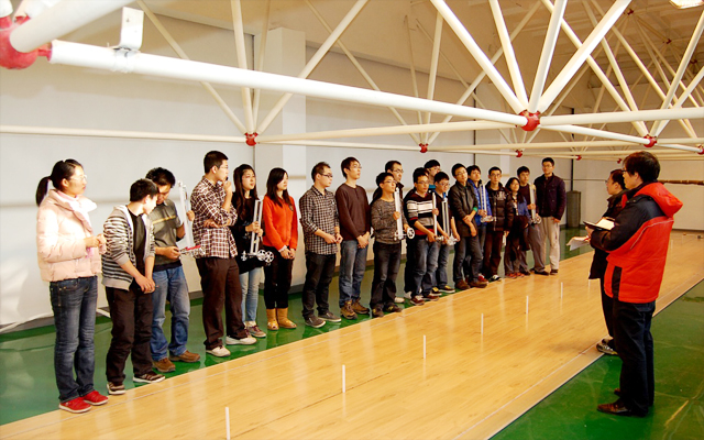 2012年10月13日,在工程训练中心会议室进行了第一阶段的方案答辩赛。全校共有13支参赛队提交了设计方案,其中竞赛项目I(“S”轨迹方案)7组,竞赛项目II(“8”字形轨迹方案)6组。通过现场答辩,最终选出8支参赛队进入下一阶段的竞赛。