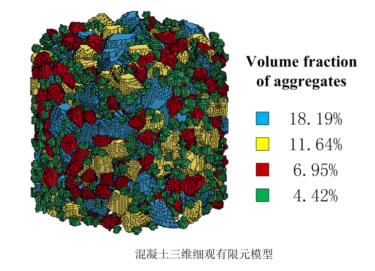 在此基础上,进行了不同应变率下Ф120×100mm混凝土试件SHPB原型实验数值模拟,重现了实验中混凝土试件的四种典型的破坏形态的形成过程,观察到实验中出现的反射波“压缩波”现象和“双峰”现象,并预测了更高应变率下混凝土试件的破坏形态、波形特征和应力平衡失效。引入损伤失效体积的概念,分析了混凝土试件SHPB实验中的应力平衡失效与波形特征之间的关系以及应力平衡失效后的材料行为,探讨了骨料和砂浆之间的粘结层(ITZ)对波形特征的影响以及波形特征如何表征混凝土材料性能。