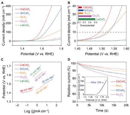 图2 CaCoO3 和SrCoO3与其它催化剂的OER性能对比