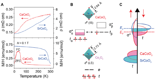 图3 CaCoO3 和SrCoO3的电输运和磁性测量