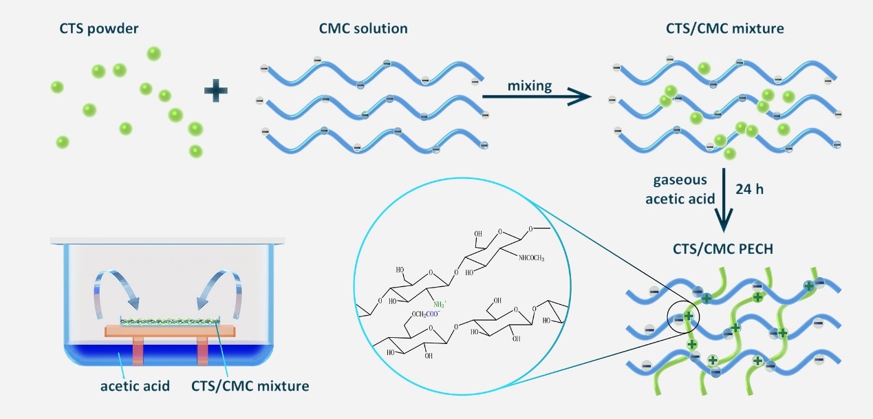 近期,该团队对基于SD-A-SGT法构建的壳聚糖衍生聚电解质复合物理水凝胶的性能进行拓展,研究结果发表于一区TOP期刊 Chem. Eng. J . 和 Compos. Part B-Eng. 。