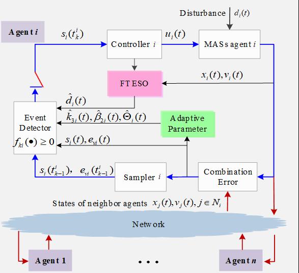 获奖论文在王佳楠副教授指导下,由博士后王丹丹和研究生闭昌瑀共同撰写完成。文章针对带有干扰的二阶多飞行器系统,首次利用非奇异终端滑模方法和自适应增益方法,设计了一种全新的完全分布式事件触发控制协议,并提出了4个事件触发条件,与单个事件触发条件相比,具有更高精度和更低触发频率,通过引入一种有限时间扩张状态观测器,进一步降低了触发次数和抖振频率,根据李雅普诺夫定理证明了闭环系统实际有限时间稳定性。