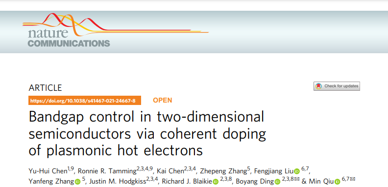 日前,北京理工大学物理学院张向东教授课题组青年教师陈宇辉研究员与新西兰维多利亚惠灵顿大学、奥塔哥大学,以及北京大学和西湖大学的研究者开展合作,在表面等离子体光学腔和二维半导体二硫化钨的复合体系上,通过利用光和物质强耦合效应,在实验上实现了对二硫化钨的高效热电子掺杂,大幅改变了二硫化钨原有的带隙,相关研究成果发表在国际顶级期刊《自然·通讯》上。