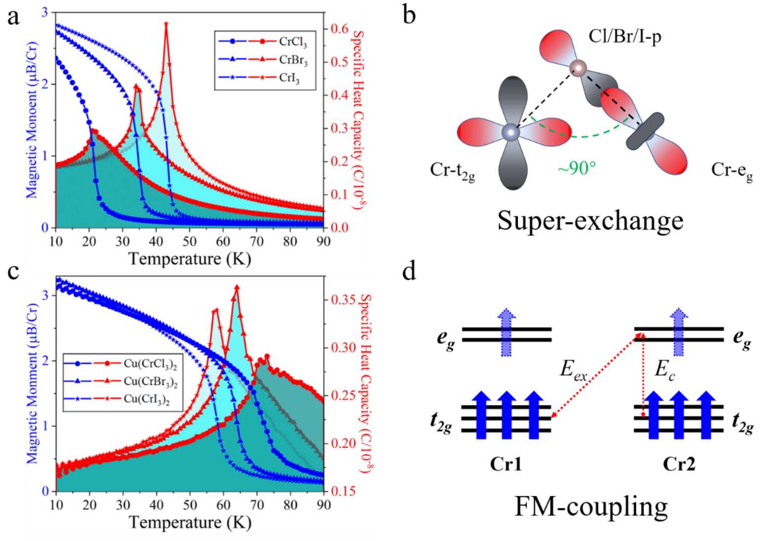 图1 单层Cu(CrX3)2原子结构和投影态密度图