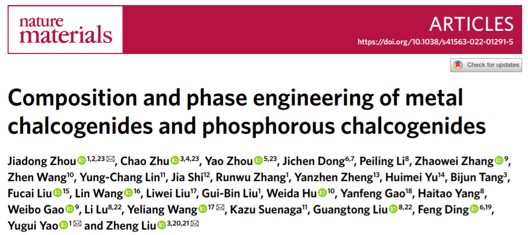 北理工团队在低维金属硫族/磷硫族化合物的组成与相工程方面取得重要研究进展