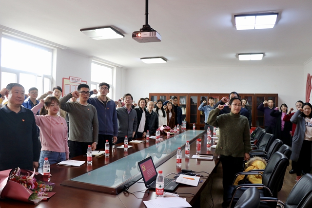 “我志愿加入中国共产党”,李海带领在座师生一起重温入党誓词,在庄严的宣誓中,大家更加坚定了心中对党的那份执着与信念。本次活动是一次时事热点研讨会,是一次学科专业交流会,是一次支部建设经验交流会,是一次感恩传承主题生活会。通过师生支部共建的形式发挥出教工支部与学生支部各自的特色,提升了党建活动效果,拉近师生情感距离,激发了支部活力。在教工党支部与学生党支部的共同努力下,党建工作将更加顺利开展,学院党建水平将进一步提升。