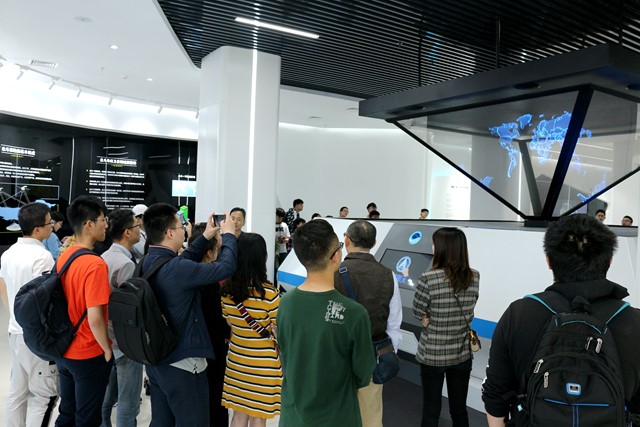 随后,师生们跟随工作人员共同参观了导航定位、通信广播、对地观测、空间科学与技术试验、深空探测、载人航天六大系列航天器模型和部分实物,近距离地看到了媒体报道中的人造卫星、发射器、地面站系统等。一张张图片、一件件模型与实物,展示了航空技术在卫星通信传输、气象服务、农业育种等领域的广泛应用。尽管短时间内很难全面了解专业高精设备中的奥秘,但师生们真切体会了航天技术的复杂与精细,震撼、惊叹于我国航天事业的重大科技成就,为祖国倍感自豪。