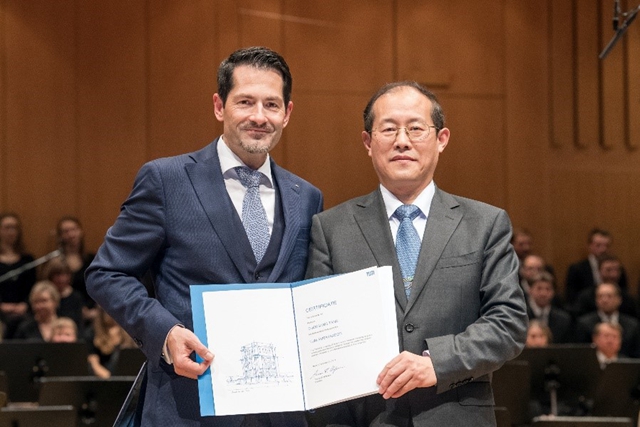 慕尼黑工业大学作为国际著名高等教育学府,为表彰以国际嘉宾和学科领域知名专家身份在慕尼黑工业大学进行学习研究与合作,为学校高水平科研和学术交流做出杰出贡献的校友,每年在慕尼黑爱乐乐团音乐厅举办的面向TUM教职工、学生及校友的音乐会上,向评选出的杰出校友颁发“TUM大使”荣誉称号。2019年全球共选出来自印度、法国、美国、意大利和中国的七位学者。北京理工大学唐胜景教授因其在中德高校间航空宇航领域交流合作及学科建设中做出卓越贡献,成为本次获奖的七位杰出校友之一。