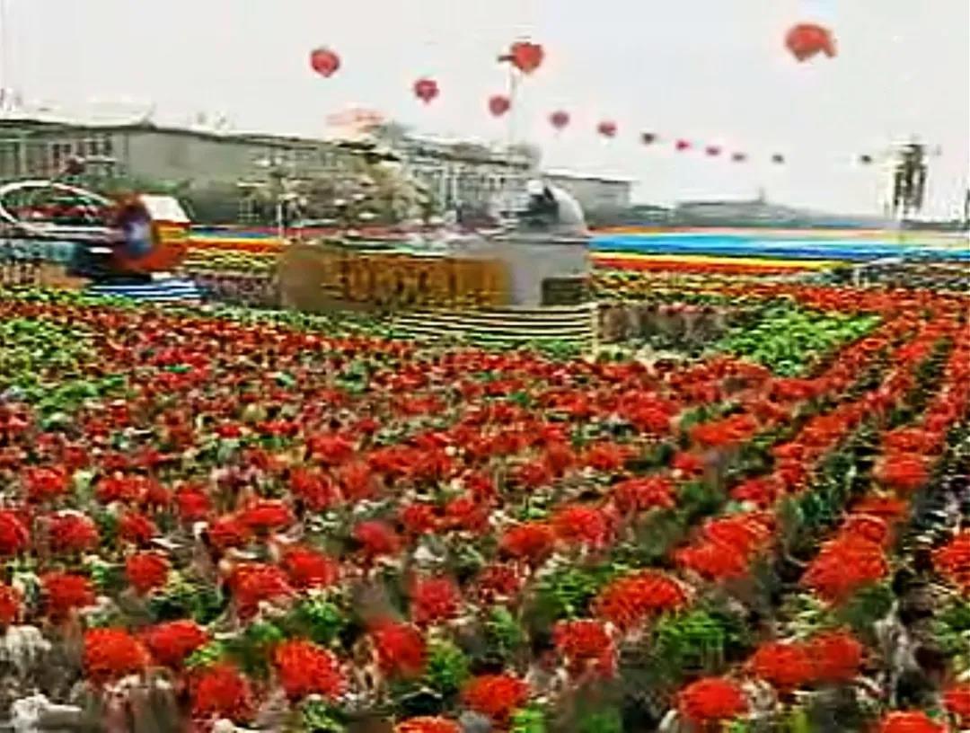 1984年10月1日,国庆35周年庆祝活动,北京工业学院(北京理工大学前身)1400名师生参与群众游行体育方阵。