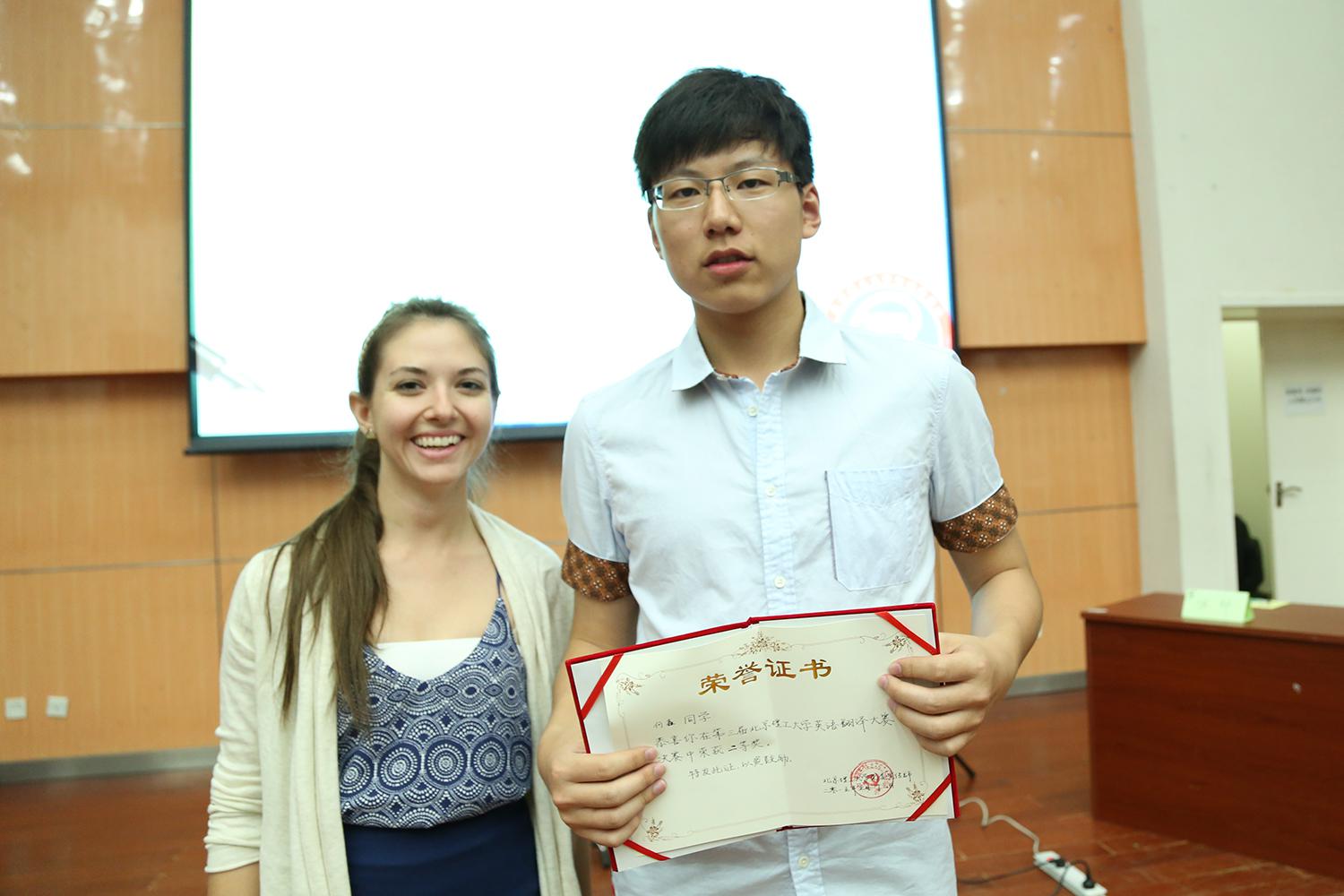 最终,陈玉竹、张郑和陆天和同学获得了三等奖,黎琼、孙航同学获得二等奖,何鑫同学荣获本次大赛一等奖,评委们为他们颁发了证书。