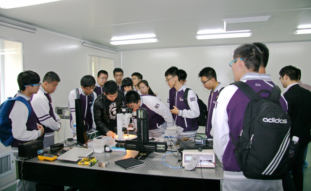 师生们首先来到北京理工大学导航制导与控制教育部工程中心,在自动化学院石永生老师的带领下参观了惯性器件与系统测试实验室。惯性制导技术是利用惯性原理控制和导引运载火箭飞向目标的技术,在航空航天领域有着非常重要的应用。石永生老师详细地给同学们讲解了惯性制导技术的原理,介绍了各种实验器材的功能,其中包括大型的陀螺仪、转台等专用设备。通过演示设备,深入浅出地回答同学们的问题,使同学们受益匪浅。