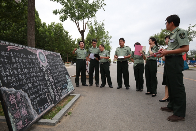 为丰富军训生活,活跃军营文化,加强连队交流,展现连队风采,9月1日,北理工2016年学生军训旅开展军训板报评比活动。军训旅副总指挥徐贵宝、马晓宁、苟曼莉,各团政委及营教导员担任评委。评委依照评分标准在评比现场对各连板报进行打分。