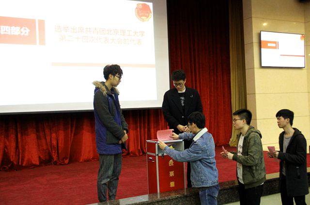在激荡的校歌声中,大会开始选举。到场的团员代表庄严投下选票,选举共青团北京理工大学机械与车辆学院委员会出席共青团北京理工大学第二十四次代表大会的代表,经过认真严谨的计票工作,马宏邦等35名团员代表当选。