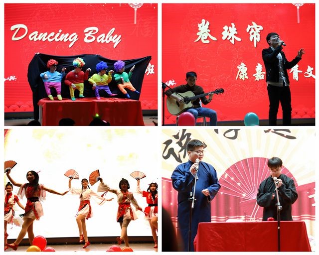 学院领导带来朗诵,歌颂了改革开放四十周年的伟大成就;辅导员集体献唱了一首《明天会更好》,送出新年祝福;晚会同时也得到了教师及其家属们的鼎力支持,耿庆波、费庆、马宏宾、金锋四位老师的女儿分别带来了钢琴伴舞《北风吹》、舞蹈《苗朵》、古筝独奏《繁华·春到拉萨》以及京剧《红娘》,为晚会增添了色彩。