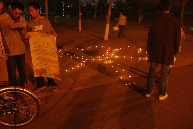 - 北理工基础教育学院信息二部烛光慢递活动温馨开展- 2014年10月26日晚,由信息二部三叶草志愿者协会举办的烛光慢递活动在良乡校区北食堂外侧顺利展开。