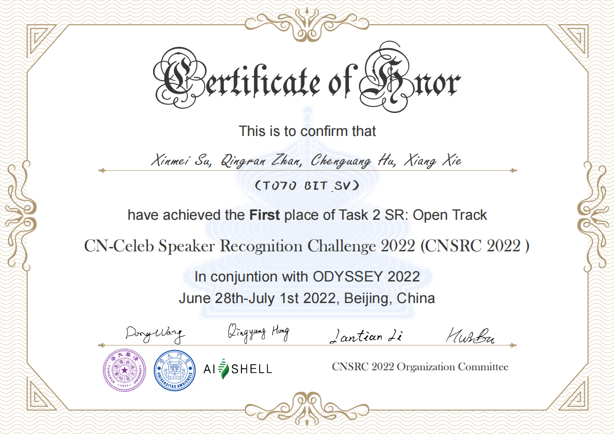 北理工学子荣获声纹识别挑战赛说话人检索任务第一名